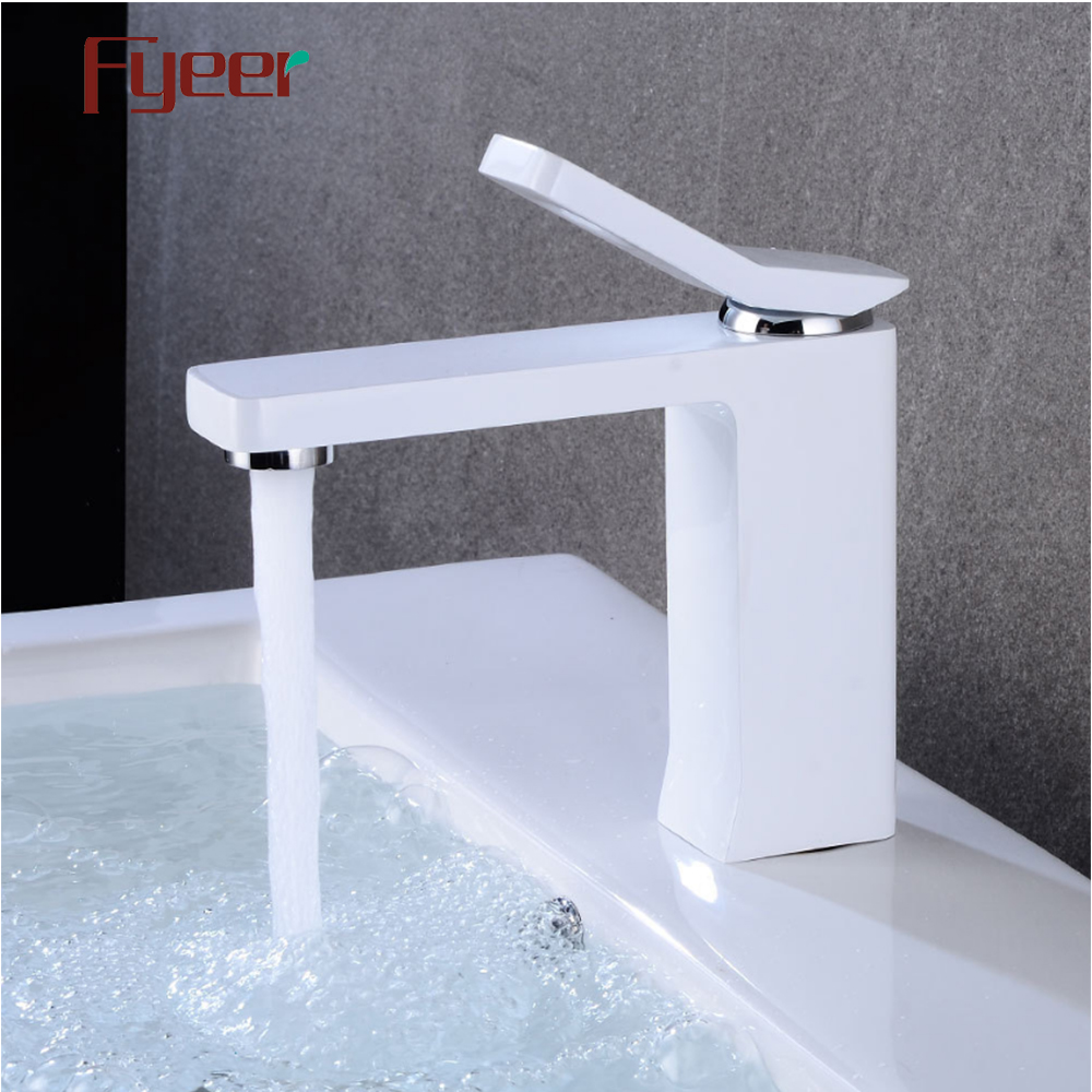 Fyeer Nieuwe Moderne Single-Hole Badkamer Wastafel Kraan Massief Messing Met Keramische Ventiel Kern Wit Rose Goud